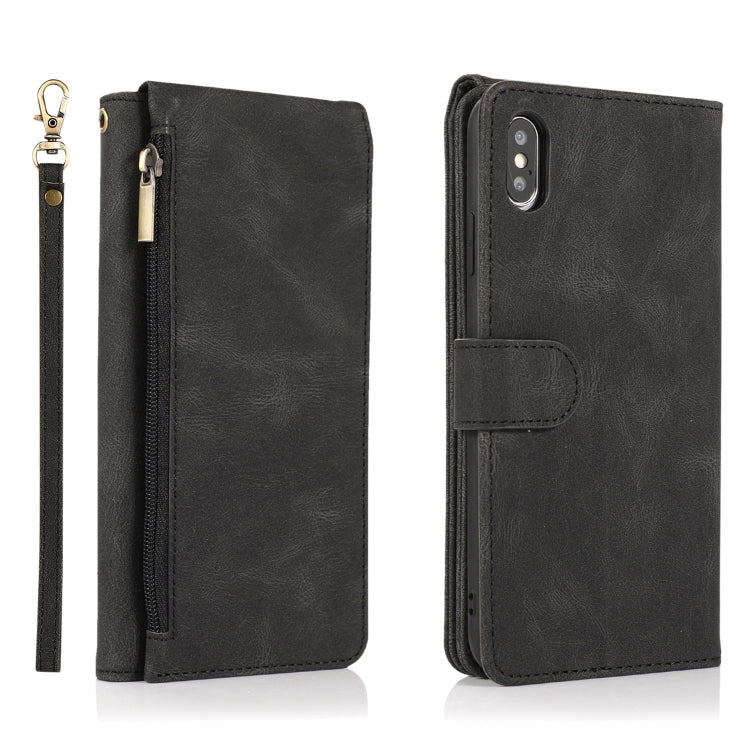 Estuche para iPhone Xs Max Skin-Feel Crazy Horse Texture Zipper Wallet Bag con Tapa Horizontal, Soporte, Ranuras y Cordón (Negro)