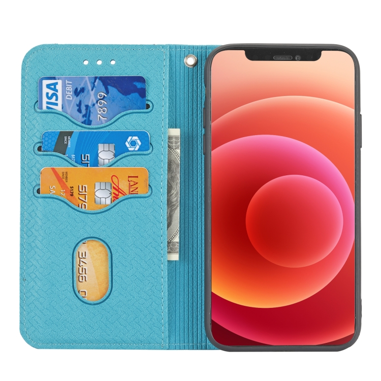 Funda para iPhone Xs Max Tejido con Costura Magnética Horizontal Flip PU Cuero Soporte Ranuras Tarjetas Billetera Cordón (Azul)