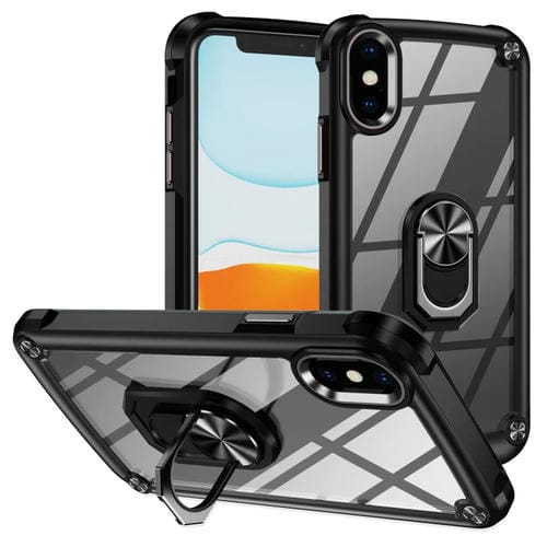 Estuche para Teléfono iPhone Xs Max TPU + PC Protección de Lente con Soporte para Anillo (Negro)