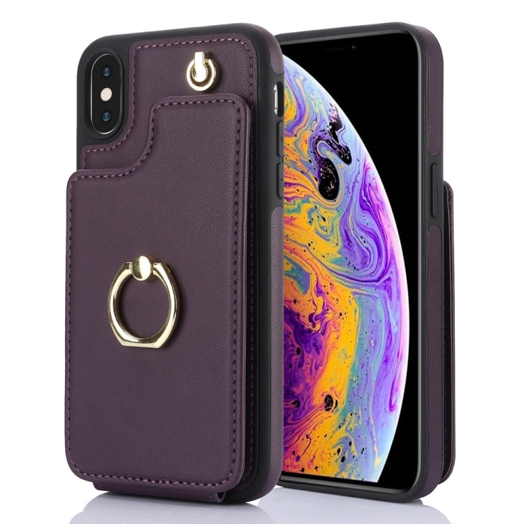 Pour iPhone XS Max YM005 Skin Feel Card Bag Étui de téléphone avec longue lanière (violet foncé)