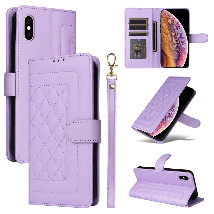 Estuche para Teléfono iPhone Xs X con Tapa de Cuero Diamond Lattice (Púrpura Claro)