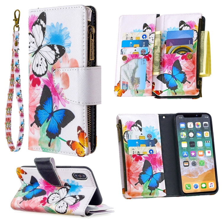Funda de Cuero para iPhone Xs / X con Tapa Horizontal, Soporte, Ranuras para Tarjetas y Billetera (Dos Mariposas)
