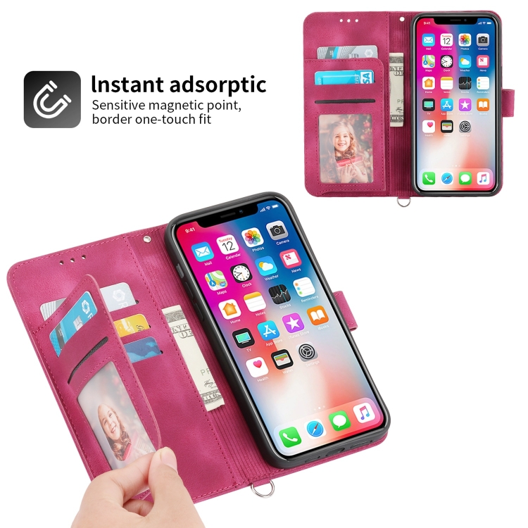 Funda de Cuero para iPhone Xs / X Skin-Feel Flowers con Billetera en Relieve (Rojo Vino)