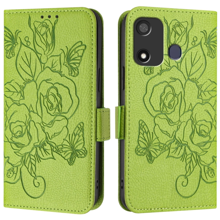 Estuche para Itel A27 de Cuero Antirrobo Rfid con Rosa en Relieve (Verde)