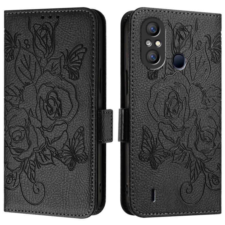Funda para Itel A58 y A49 de Cuero Antirrobo RFID con Rosa en Relieve (Negro)