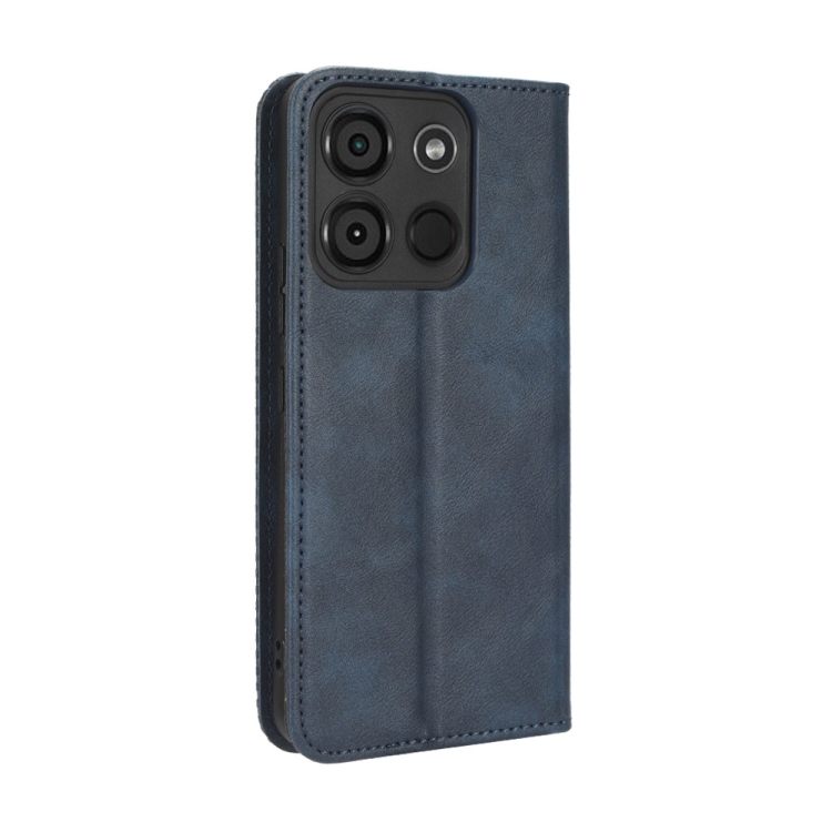 Funda de Cuero para Itel A60 con Hebilla Magnética y Textura Retro (Azul)