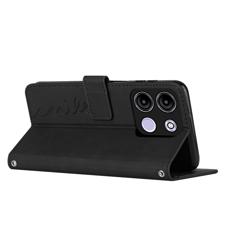 Funda de Cuero para Itel A60S Skin Feel con Relieve y Cordón Largo (Negro)