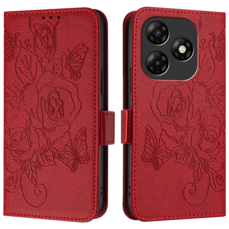 Funda de Cuero Antirrobo Rfid para Itel P55 4G con Relieve (Rojo)