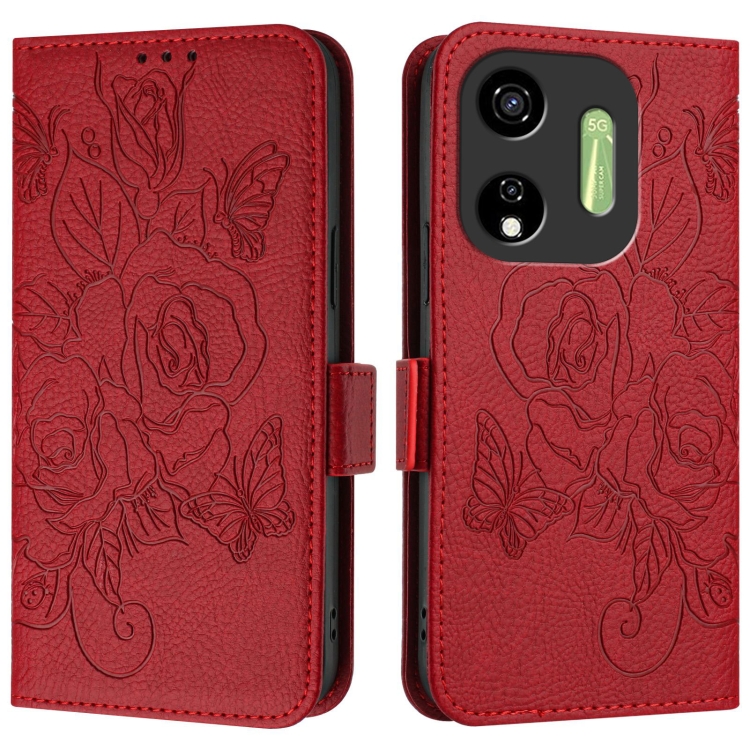 Funda de Cuero Antirrobo RFID para Itel P55 5G con Relieve Rosa (Rojo)