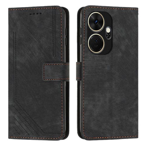 Funda de Cuero Skin Feel para Itel P55 con Patrón de Rayas y Cordón (Negro)