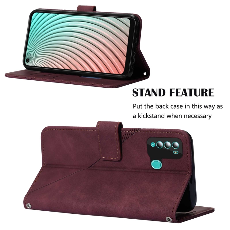 Funda de Cuero con Goma en Relieve para Itel S16 Pro Crossbody (Rojo del Vino)