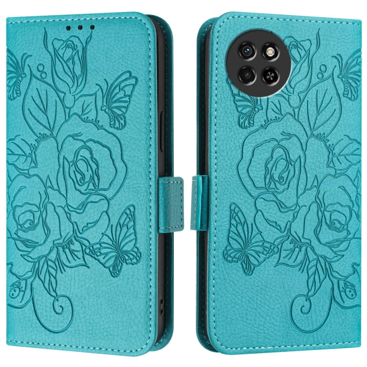 Estuche para Teléfono Itel S23 Cuero Antirrobo Rfid con Rosa En Relieve (Azul Claro)
