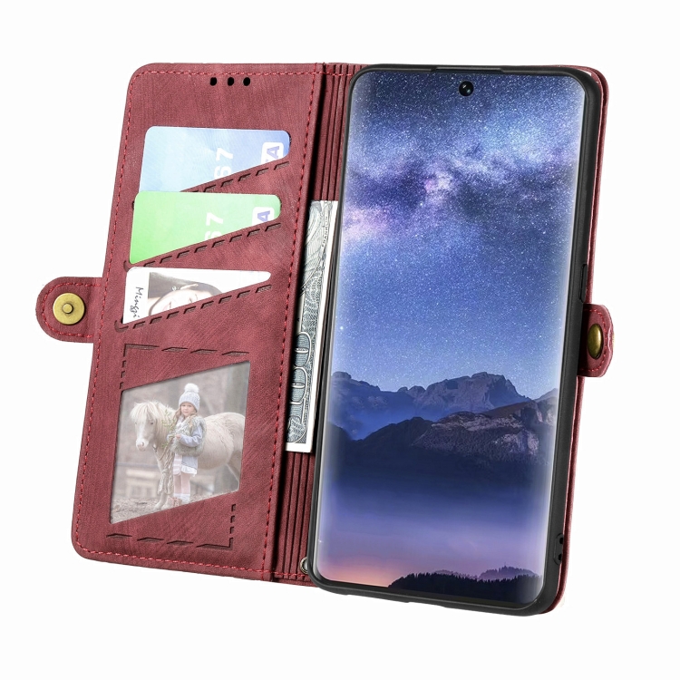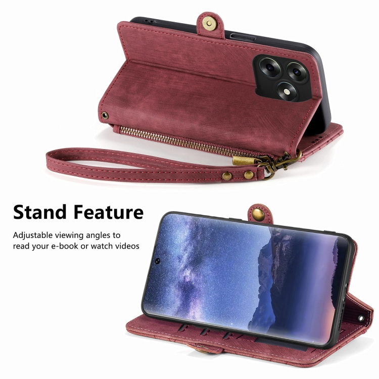 Funda de Cuero para Itel S23 con Hebilla Lateral y Billetera con Cremallera Geométrica (Rojo)