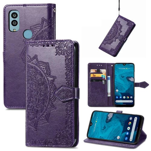 Pour Kyocera Android One S10 Mandala Flower Embossed Leather Phone Case (Violet)