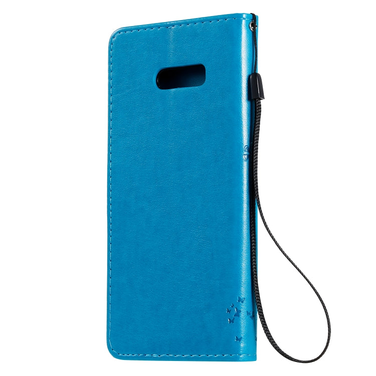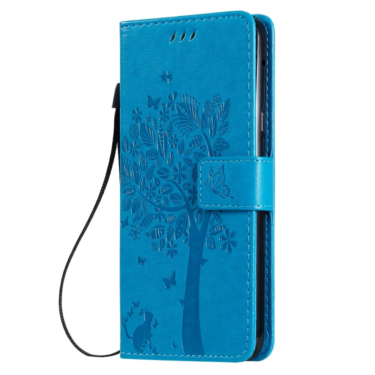 Estuche Cuero Pu para LG G8X con Diseño Árbol y Gato, Soporte, Ranuras, Billetera y Cordón (Azul)