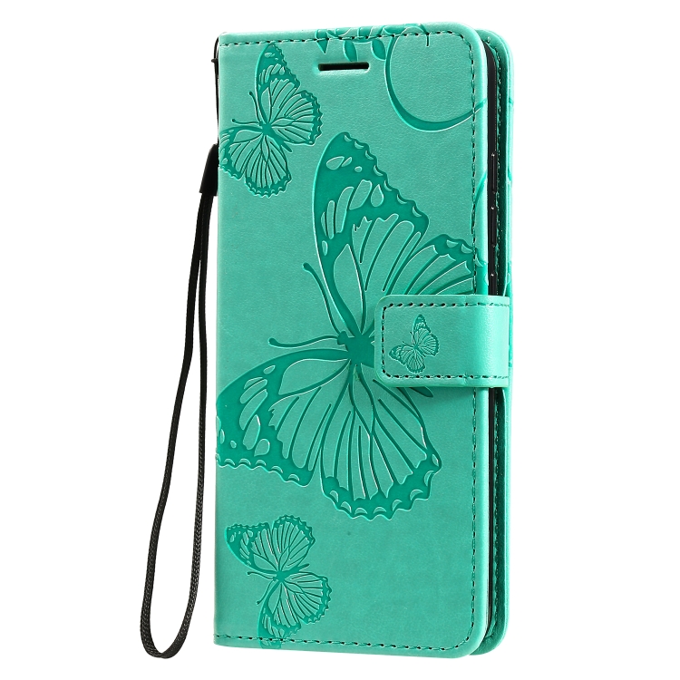 Funda Cuero PU LG K20 Patrón Mariposa con Tapa Horizontal Soporte Ranuras y Cordón (Verde)