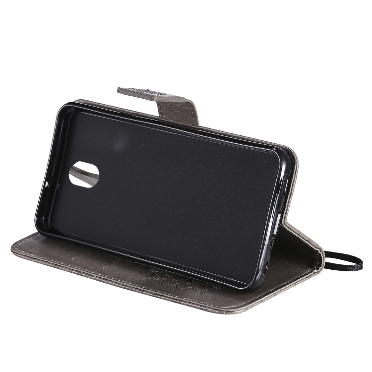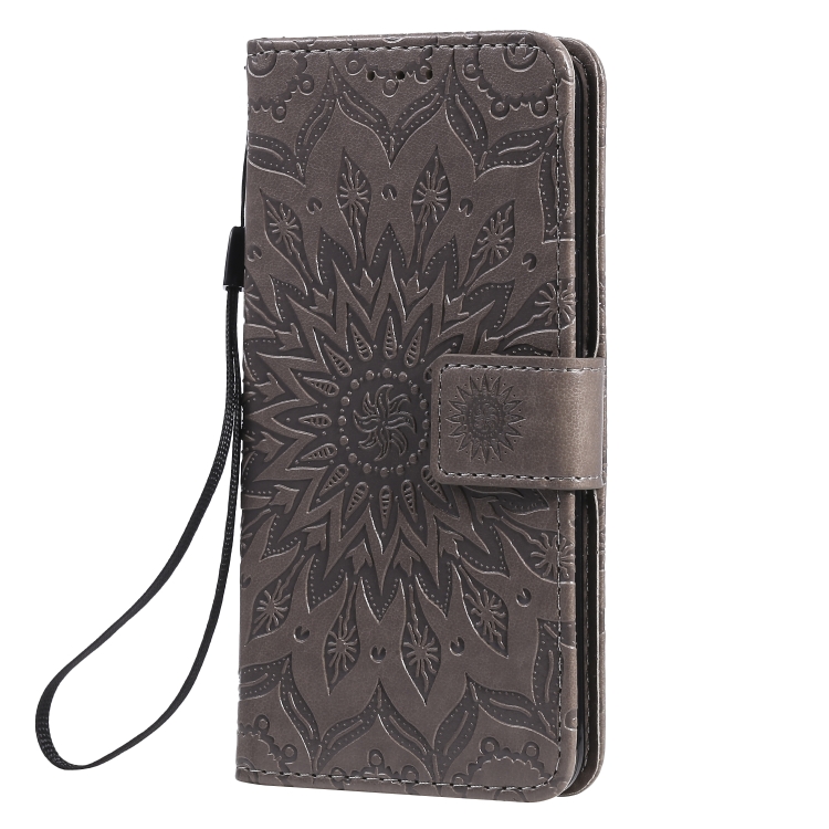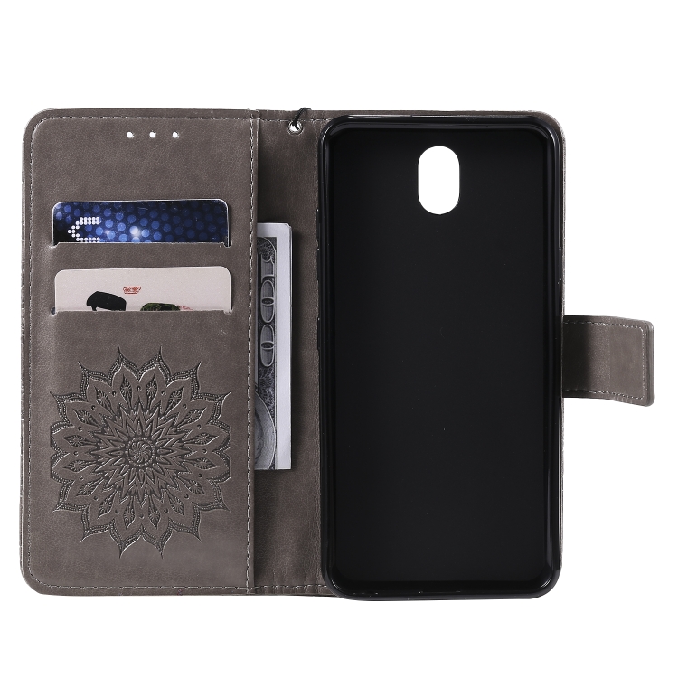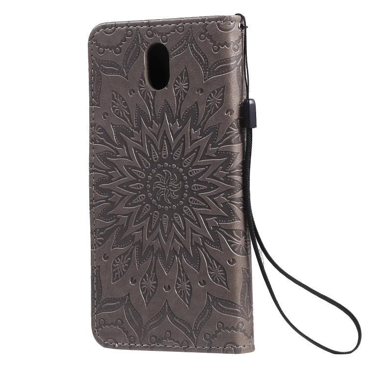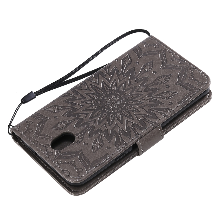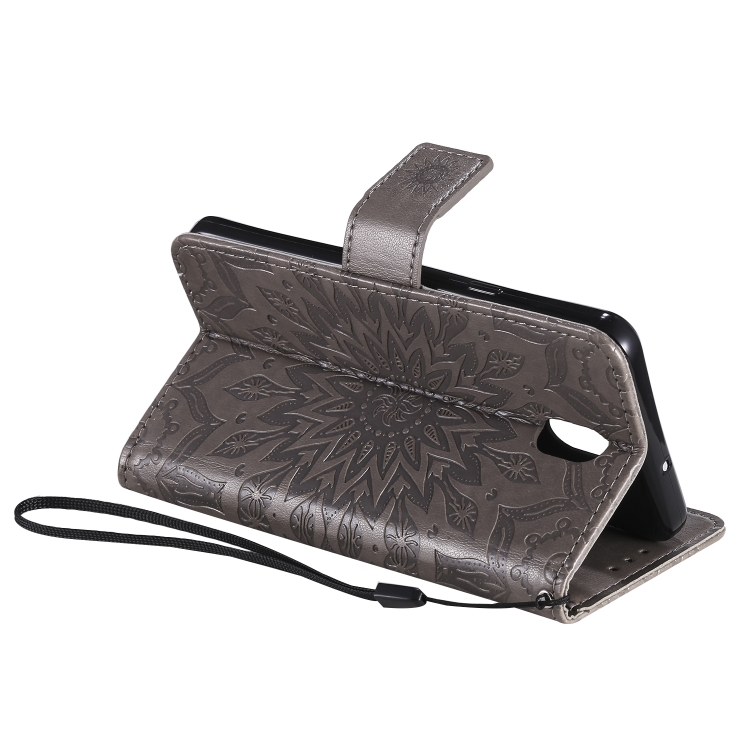 Funda Cuero Pu LG K30 (2019) Patrón Girasol con Tapa Horizontal, Soporte, Ranuras y Cordón (Gris)