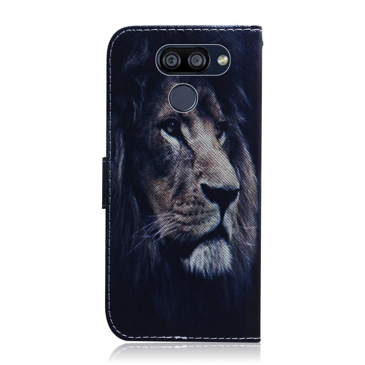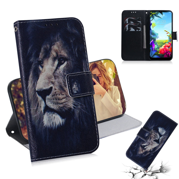 Estuche de Cuero Abatible Horizontal para LG K40S con Atracción Magnética, Soporte, Ranura para Tarjeta y Billetera (León)