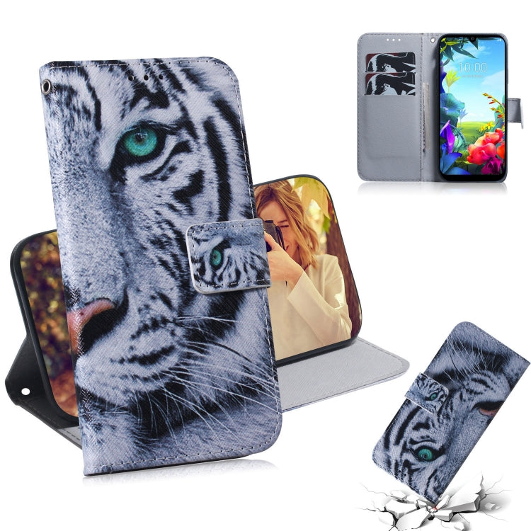 Estuche de Cuero Abatible Horizontal para LG K40S con Atracción Magnética, Soporte y Ranura para Tarjeta (Tiger)