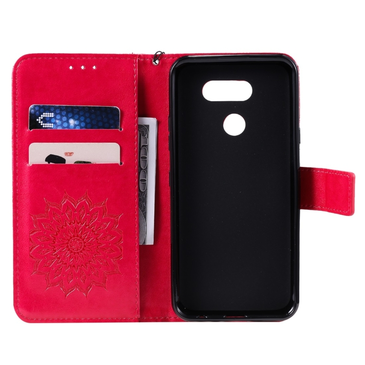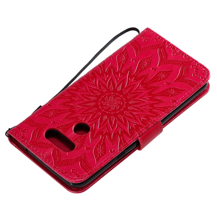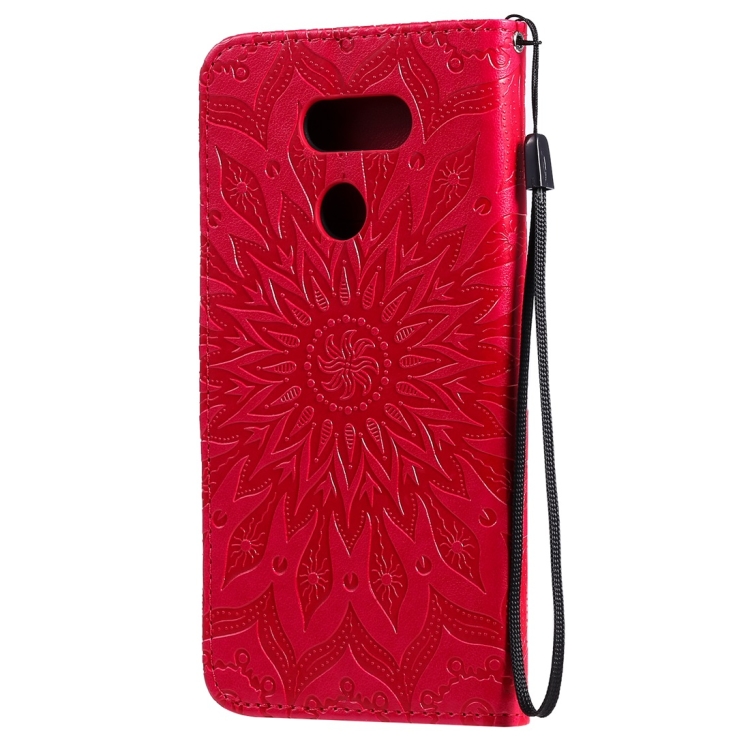 Funda Cuero PU LG K40S con Tapa Horizontal, Soporte, Ranuras y Cordón (Rojo)