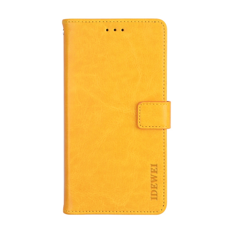 Funda de Cuero Idewei Crazy Horse para LG K51S con Tapa Horizontal, Soporte, Ranuras para Tarjetas y Billetera (Amarillo)