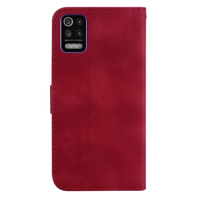 Estuche de Cuero En Relieve en Forma de 7 para LG K52 / K62 / Q52 (Rojo)