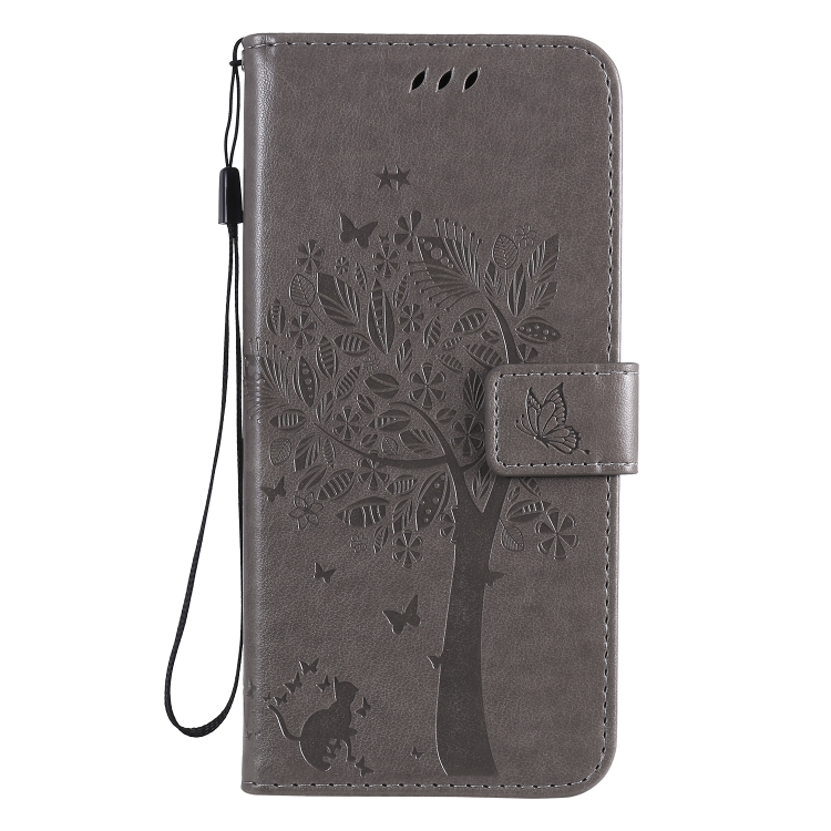 Funda de Cuero para LG K61 Tree & CAT con Tapa Horizontal, Soporte, Ranuras para Tarjetas y Cordón (Gris)