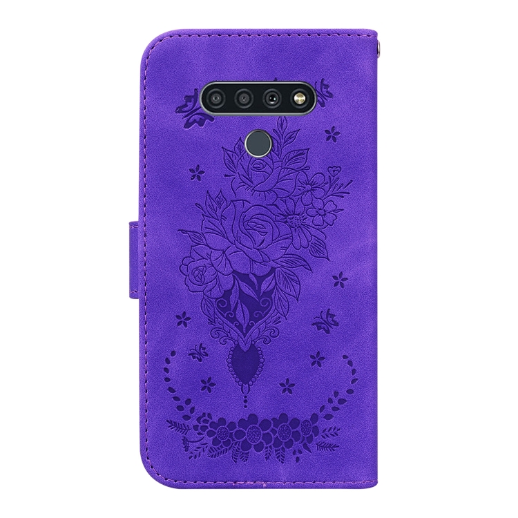Funda de Cuero para LG K71 Stylo 6 con Relieve de Mariposa (Púrpura)