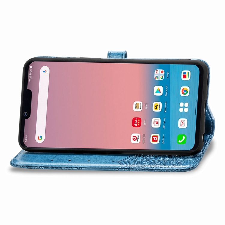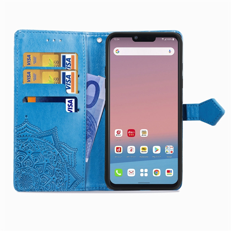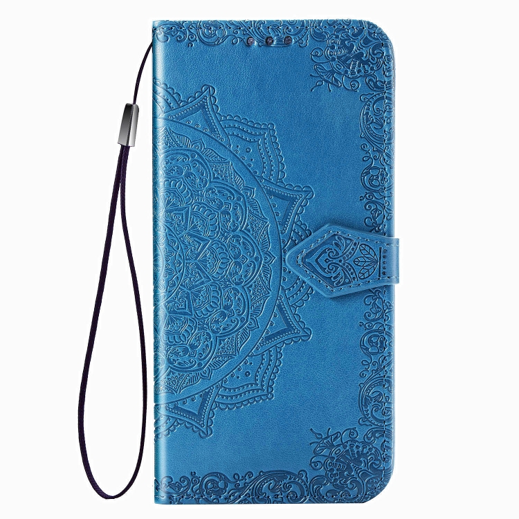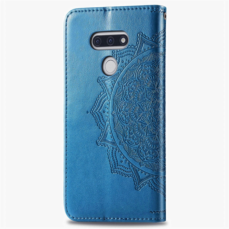 Funda de Cuero LG Style3 L-41A Mandala Flower Tapa Horizontal Soporte Ranura Tarjeta Billetera Cordón (Azul)