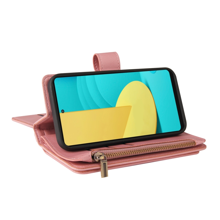 Funda de Cuero PU + TPU para LG Stylo 7 y Stylo 7 5G con Flip Horizontal, Titular, 15 Tarjetas, Wallet, Cripper Pocket y Lanyard (Rosa)