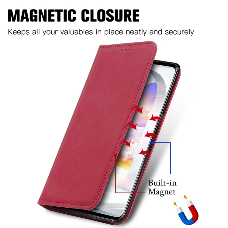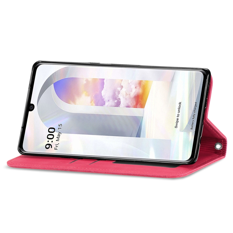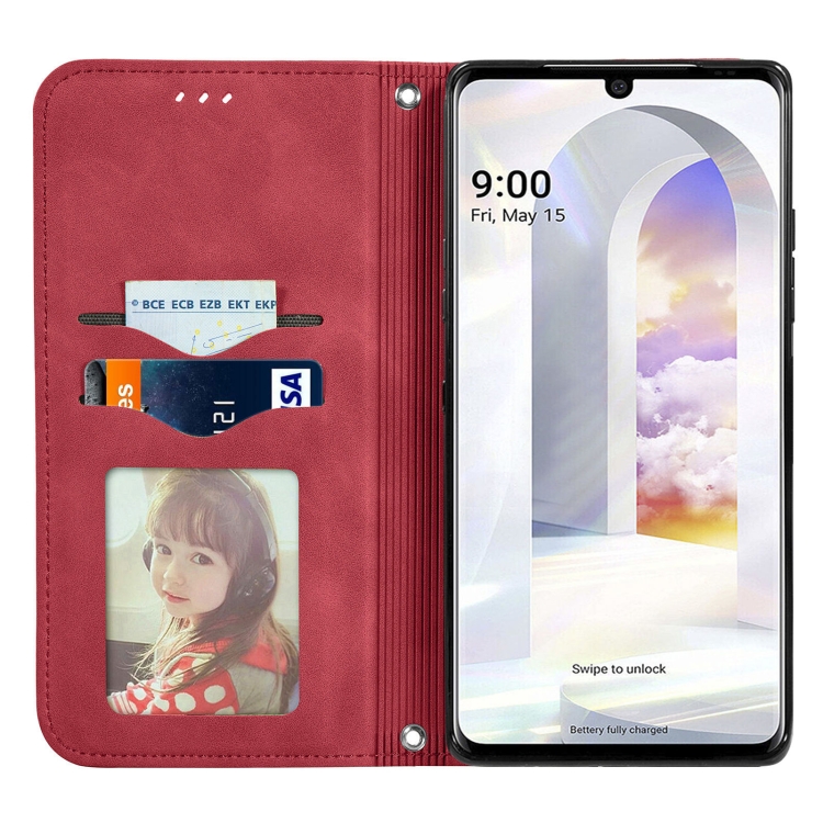 Funda de Cuero LG Velvet 2 Pro Flip Horizontal Magnética con Soporte y Ranuras para Tarjetas (Rojo)