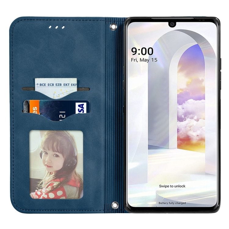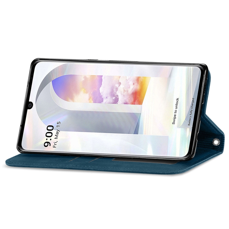 Funda de Cuero LG Velvet 2 Pro Flip Horizontal Magnética con Soporte y Ranuras para Tarjetas (Azul)