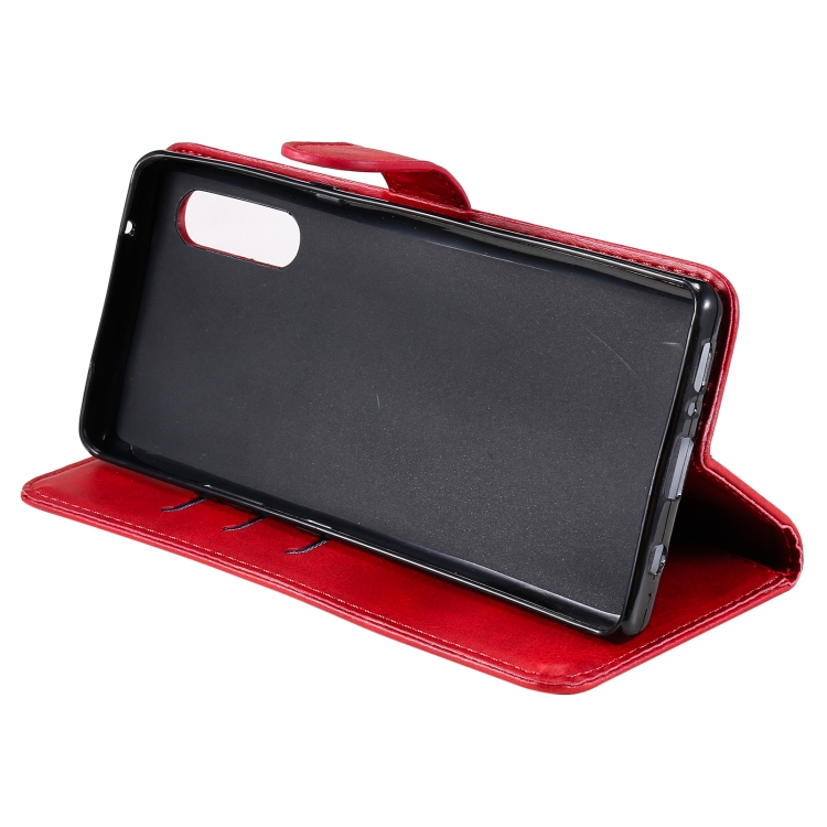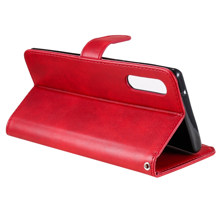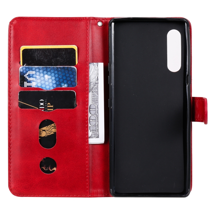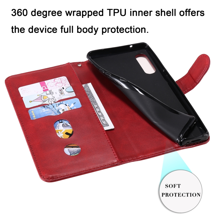 Estuche de Cuero LG Velvet con Cierre Cremallera, Soporte, Ranuras para Tarjetas y Billetera (Rojo)