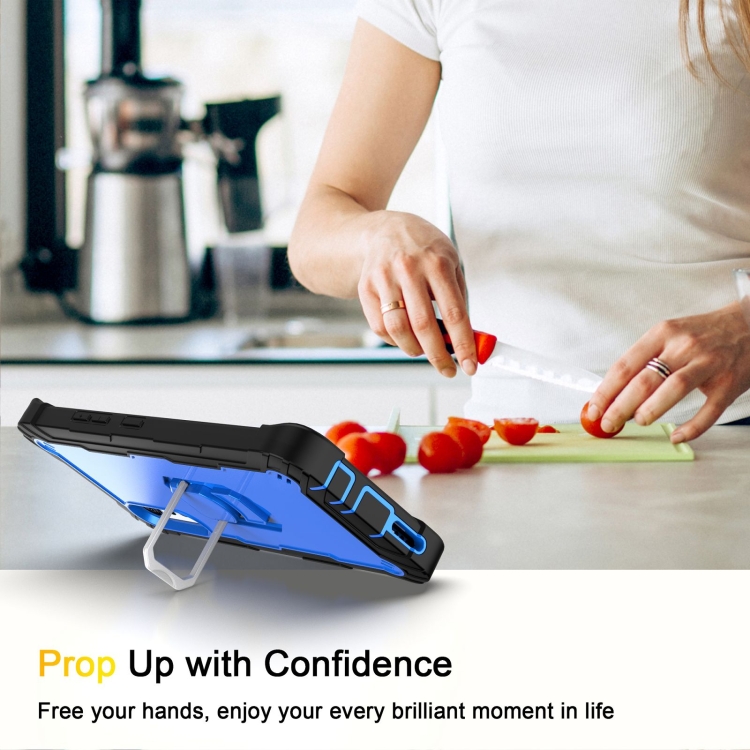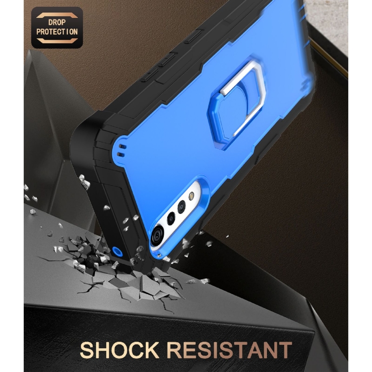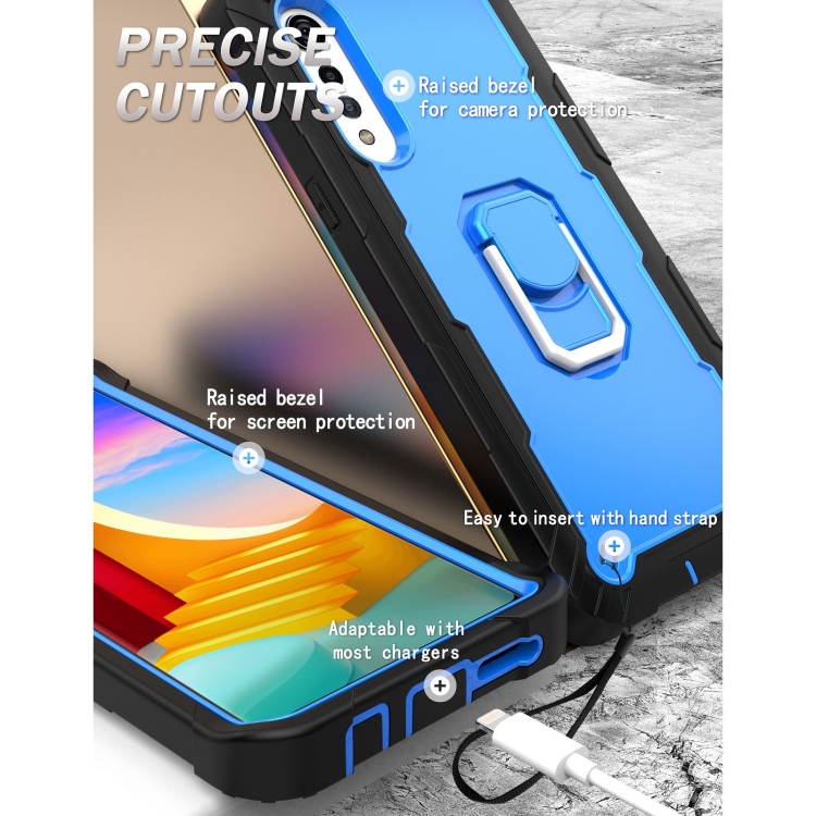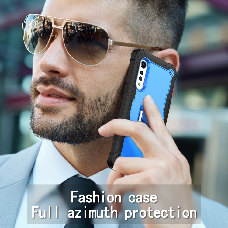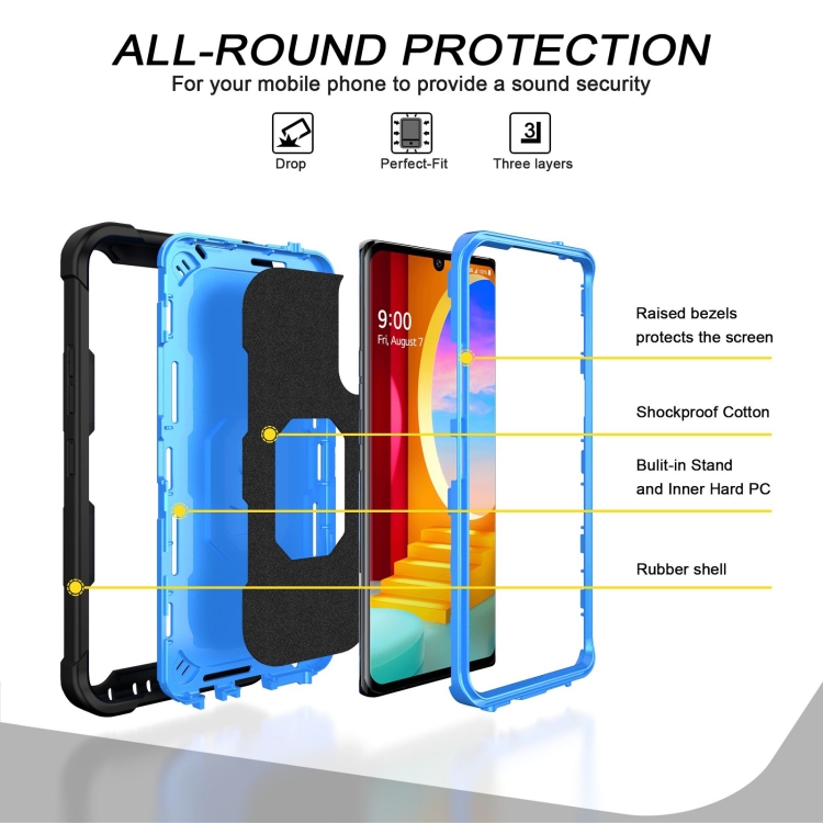 Funda Protectora 3-Capas para LG Velvet con Soporte Giratorio a Prueba de Golpes (Negro + Azul)