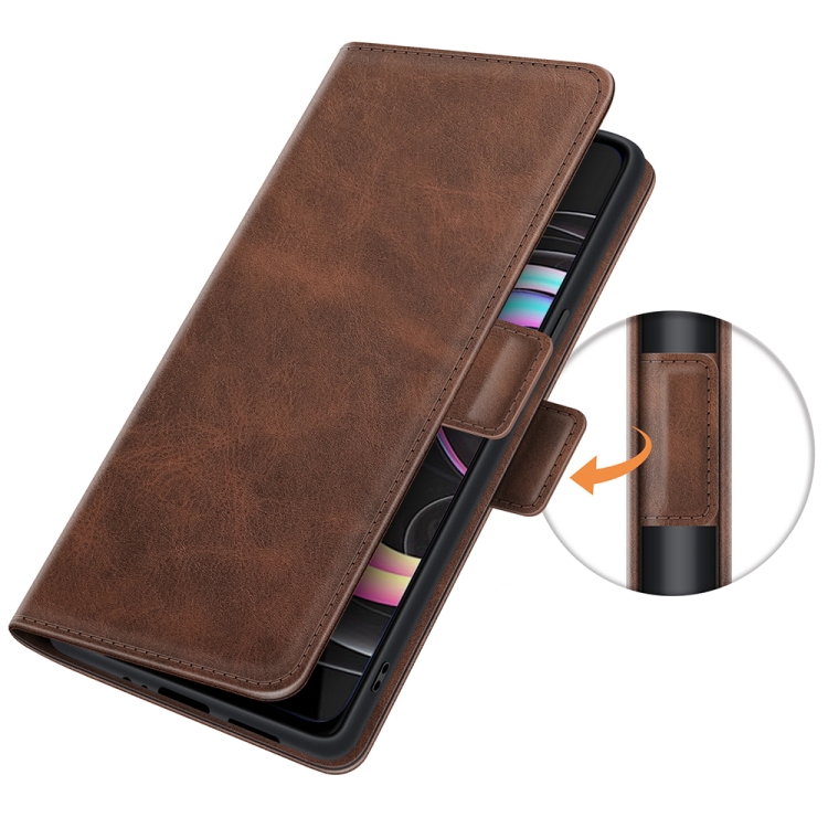 Para Motorola Edge 20 Lite 5G Hebilla magnética de doble lado Doble Funda de cuero con tapa con soporte y ranuras para tarjetas y billetera (marrón)