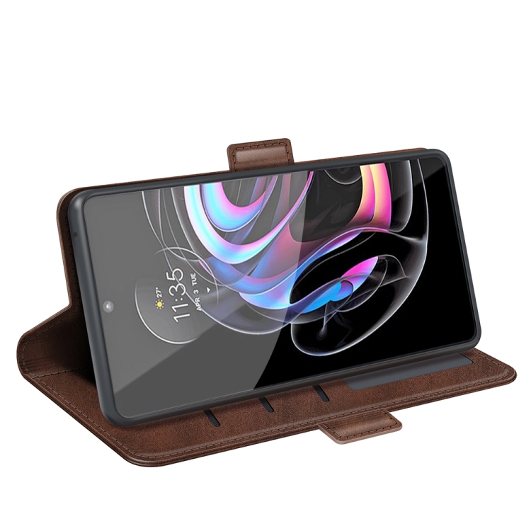 Para Motorola Edge 20 PRO 5G Hebilla magnética de doble lado de doble cara Funda de cuero con titular con soporte y tragamonedas y billetera (marrón)