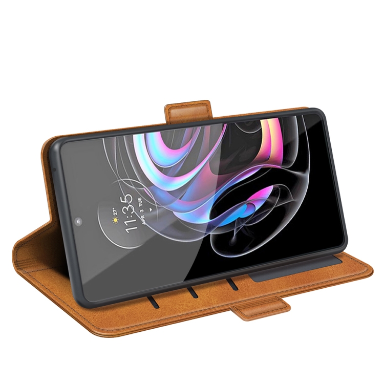 Para Motorola Edge 20 PRO 5G Hebilla magnética de doble lado de doble cara Funda de cuero con titular de tapa con soporte y ranuras para tarjetas y billetera (amarillo)