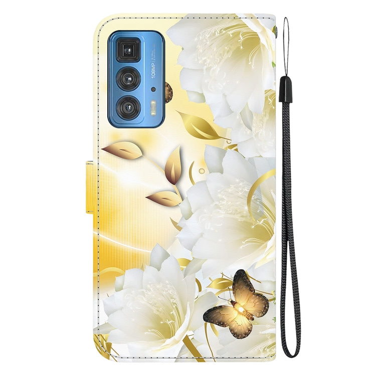 Funda de Cuero para Motorola Edge 20 Pro con Dibujo Coloreado y Textura de Cristal (Epiphyllum de Mariposa Dorada)