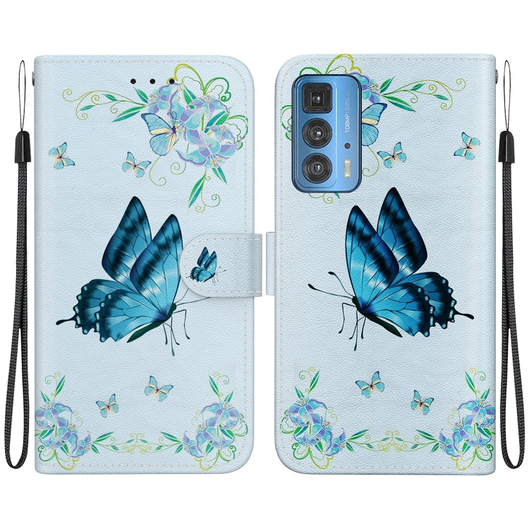 Funda de Cuero para Motorola Edge 20 Pro con Dibujo Coloreado y Textura de Cristal (Pensamientos Azules)