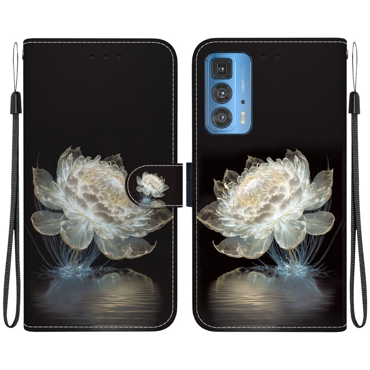 Funda de Cuero para Motorola Edge 20 Pro con Dibujo Coloreado y Textura de Cristal (Peonía de Cristal)