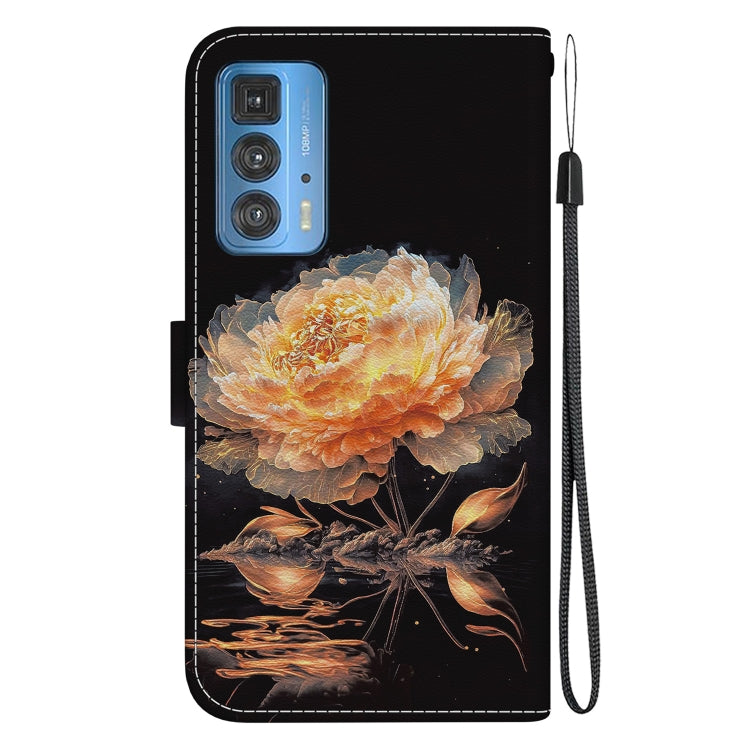 Funda de Cuero para Motorola Edge 20 Pro con Dibujo Coloreado y Textura de Cristal (Peonía Dorada)