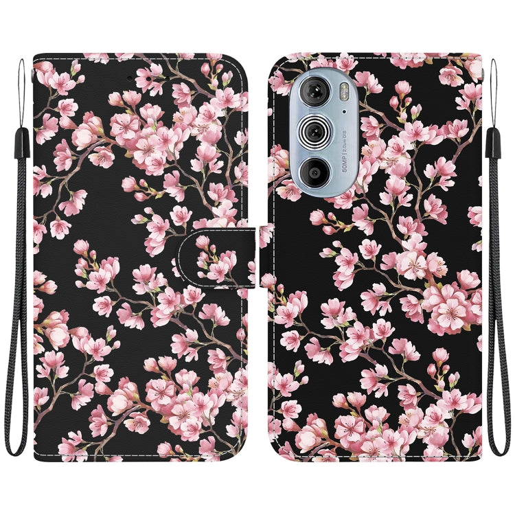 Estuche de Cuero para Motorola Edge + (2022) con Dibujo Coloreado y Textura de Cristal (Flor de Ciruelo)