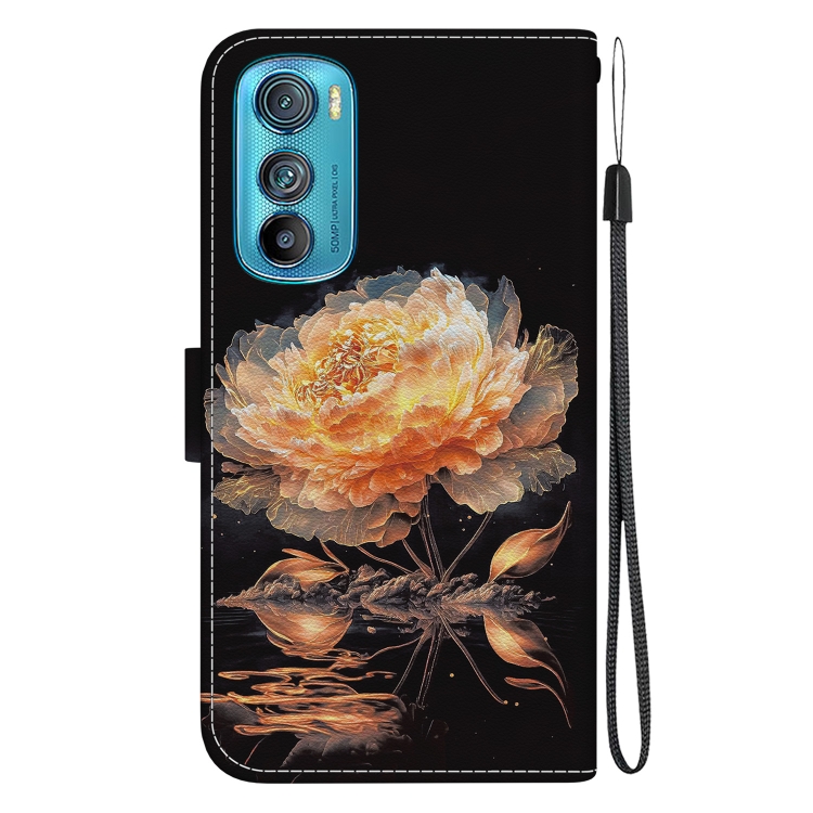 Funda de Cuero para Motorola Edge 30 con Dibujo Coloreado y Textura de Cristal (Peonía Dorada)
