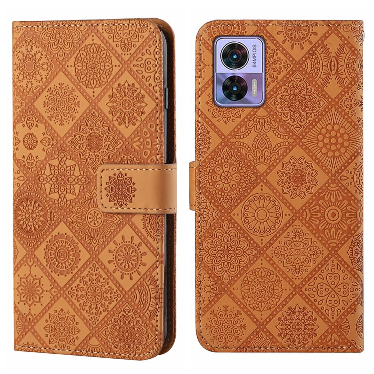 Funda para Motorola Edge 30 Neo de Cuero con Patrón en Relieve Estilo Étnico (Marrón)