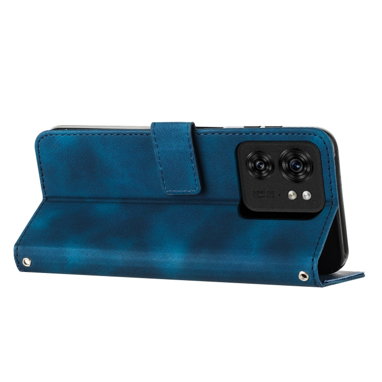 Funda de Cuero para Motorola Edge 40 Dream Triangle con Cordón (Azul)