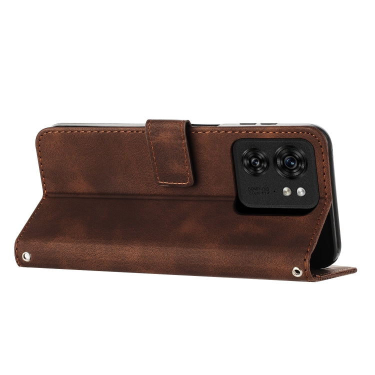 Funda de Cuero para Motorola Edge 40 Dream Triangle con Cordón (Marrón)