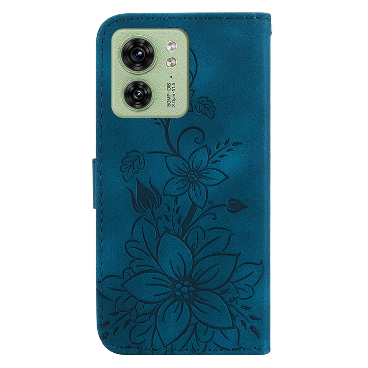 Funda de Cuero con Relieve Lily para Motorola Edge 40 (Azul Oscuro)