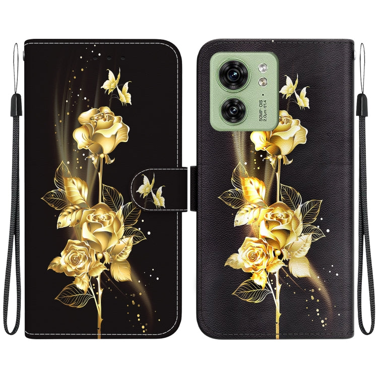 Funda de Cuero Motorola Edge 40 con Dibujo Coloreado y Textura de Cristal (Mariposa Dorada Rosa)