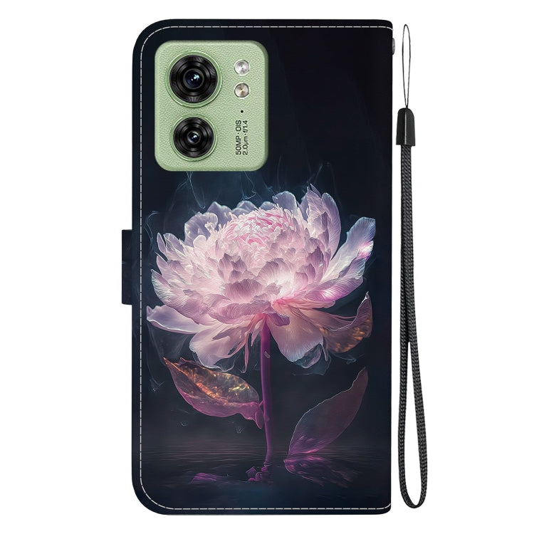 Funda de Cuero para Motorola Edge 40 con Dibujo Coloreado y Textura de Cristal (Peonía Púrpura)