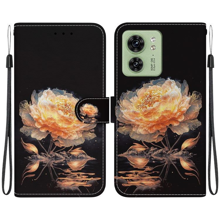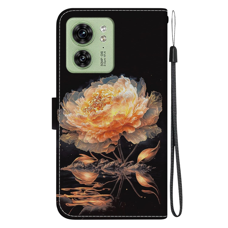Funda de Cuero para Motorola Edge 40 con Dibujo Coloreado y Textura de Cristal (Peonía Dorada)